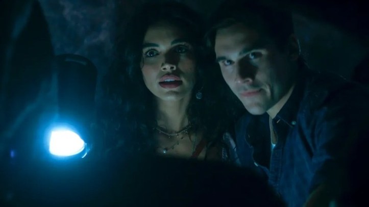 Miguel (Nicolas Prattes) decide voltar a Portugal, e Olívia (Jessica Córes) sofre acidente — Foto: Globo
